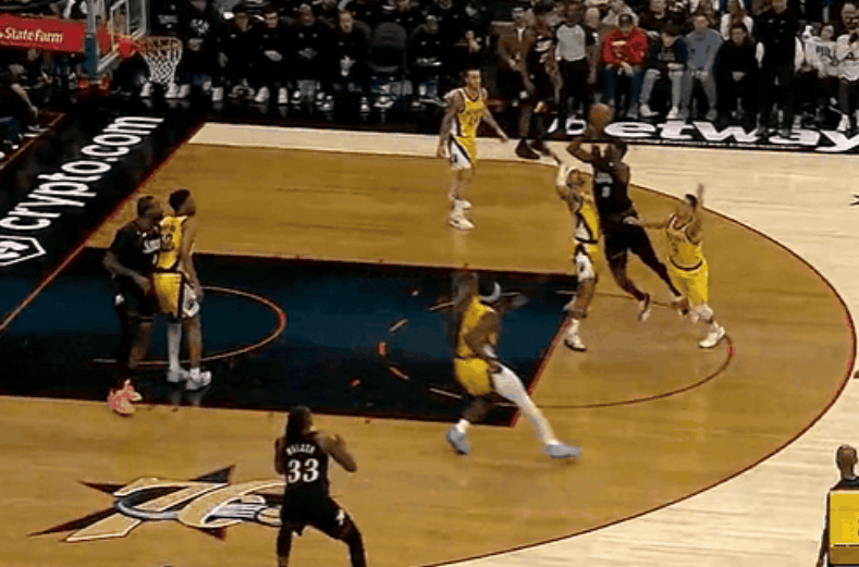 第三節(jié)比賽,喬治曲高喬治在對(duì)手貼防下身體扭曲高難度打成2+1,對(duì)手打成助76人反超比分。貼防體扭
