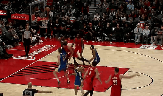 NBA常規(guī)賽,勇士對陣開拓者的卡馬比賽正在進行中。