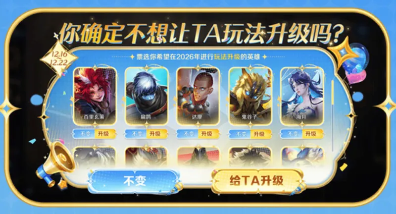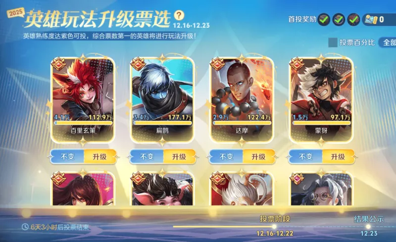 另外,雖說這次共創(chuàng)投票活動(dòng)新增了“升級”和“不變”的按鈕,但絕大多數(shù)玩家的投票都是“升級”,可見這些英雄哪怕頂端局再強(qiáng),或多或少也是存在一些讓玩家不滿意的地方。