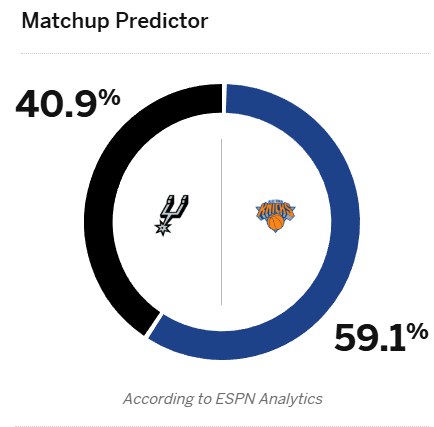 賽前,板E比賽美媒ESPN預測本場比賽,測明刺尼克斯勝率59.1%占據上風,日馬馬刺勝率為40.9%。尼尼克? ?