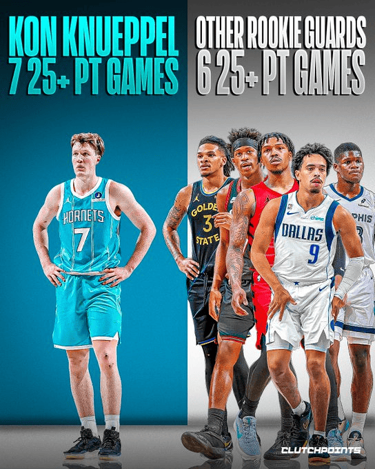 當其他新秀后衛(wèi)還在摸索時,他已七次輕松砍下25+得分,場均得分甚至超過所有新秀后衛(wèi)總和!