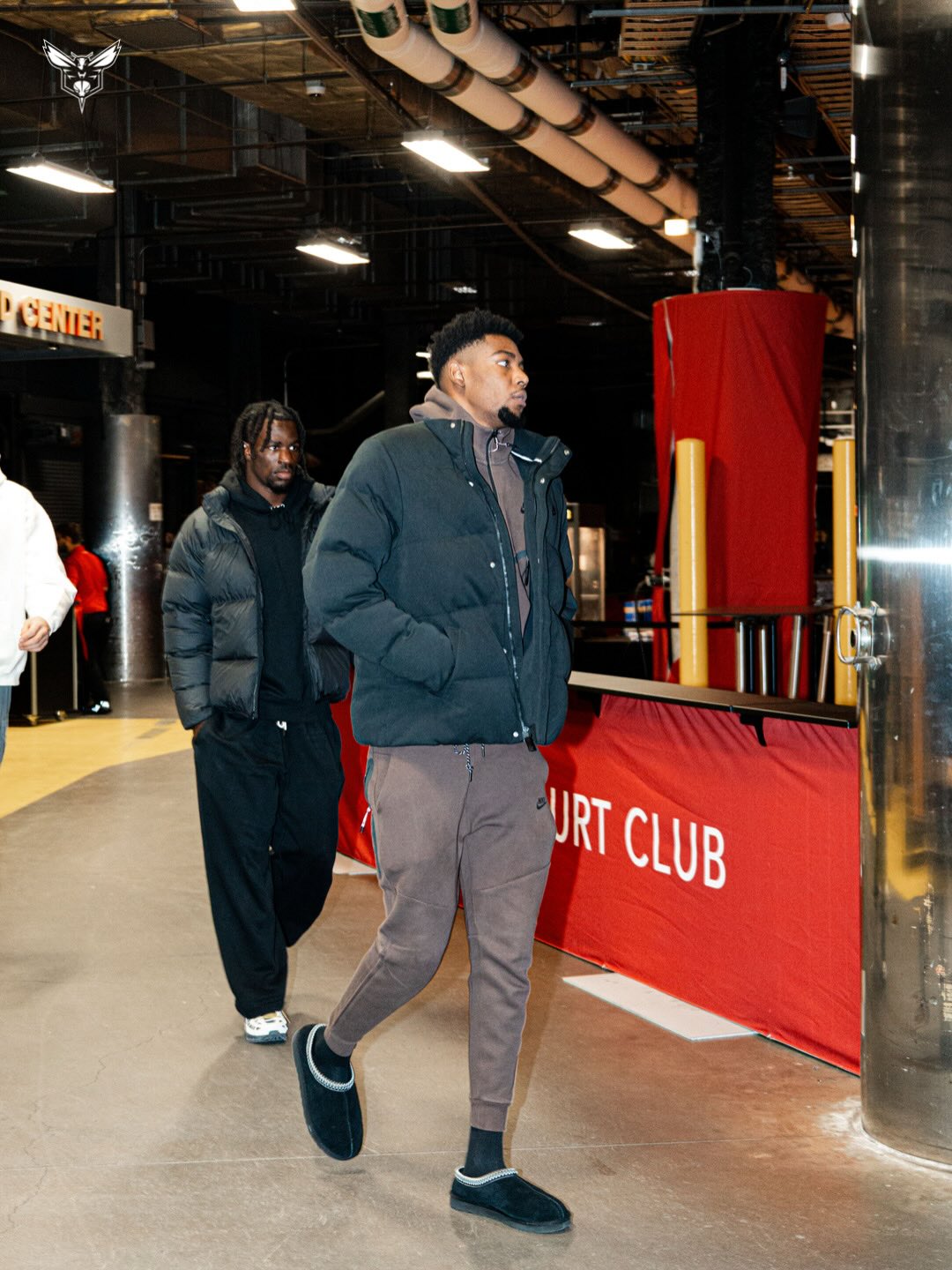 虎撲12月15日訊 黃蜂官方更新社媒,曬球員賽前入場照片,照片并配文:球隊已抵達騎士主場。已抵
