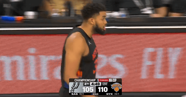 虎撲12月17日訊 NBA杯決賽,尼克斯對陣馬刺的森拿斯還剩分傷出比賽正在進(jìn)行中。