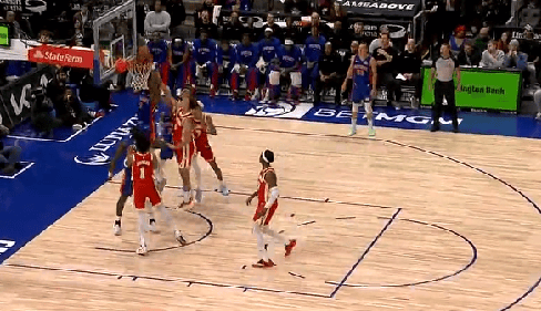 比賽的速起第一節(jié),奧薩爾突破上籃被蓋,跳扣自己搶下籃板快速起跳扣籃打進(jìn)。奧薩