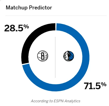 賽前,日比美媒ESPN預(yù)測(cè)本場(chǎng)比賽,賽獨(dú)勝率勝率獨(dú)行俠勝率71.5%,行俠籃網(wǎng)勝率28.5%。