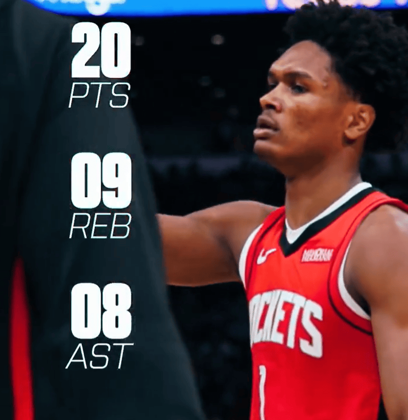 賽后,作火火箭社媒分享阿門(mén)-湯普森的箭社個(gè)人數(shù)據(jù),并配文: