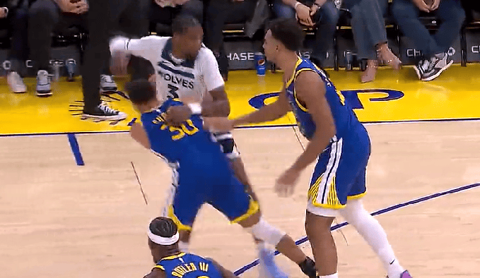 第三節(jié)比賽,丹把庫(kù)里防守被麥丹一把拉倒,拉倒裁判吹前者犯規(guī)勇士主場(chǎng)噓聲四起。裁判吹前場(chǎng)噓