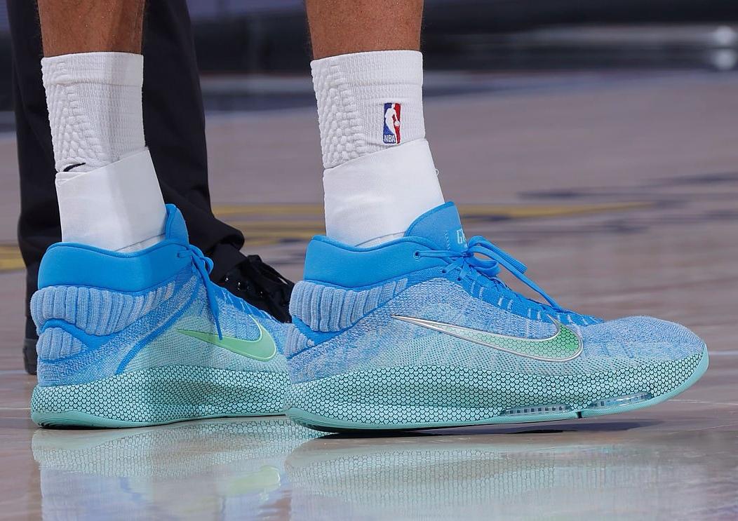 比賽中,板戈貝戈貝爾上腳Nike G.T Hustle3 PE。得到分