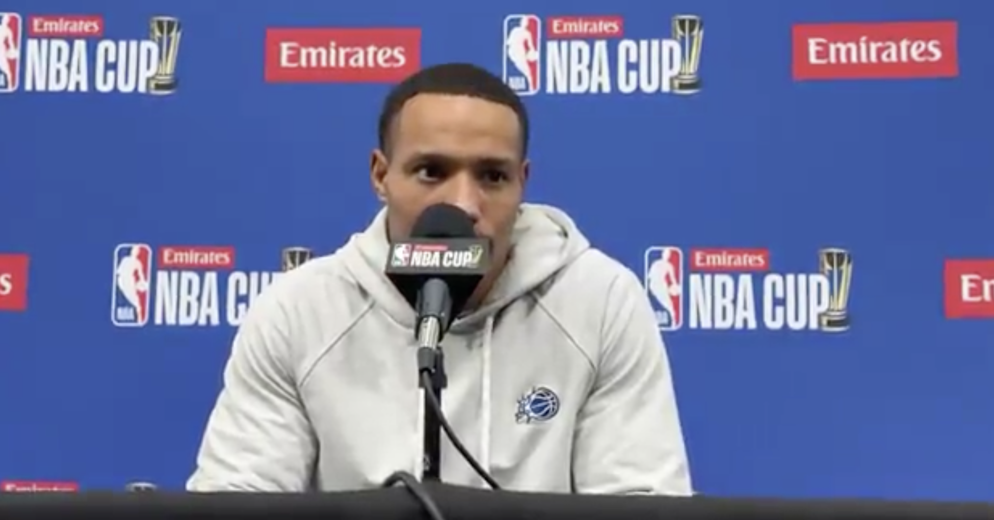魔術(shù)球員戴斯蒙德-貝恩在接受記者采訪時(shí)談到了NBA杯。比到超