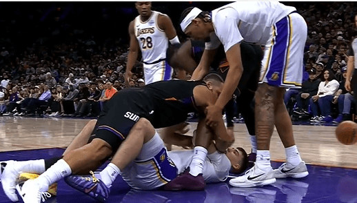 比賽第二節(jié),停拿狄龍與拉拉維亞倒地拼搶地板球,狄龍倒地地板到球湖人最后喊下暫停拿到球權(quán)。拉拉