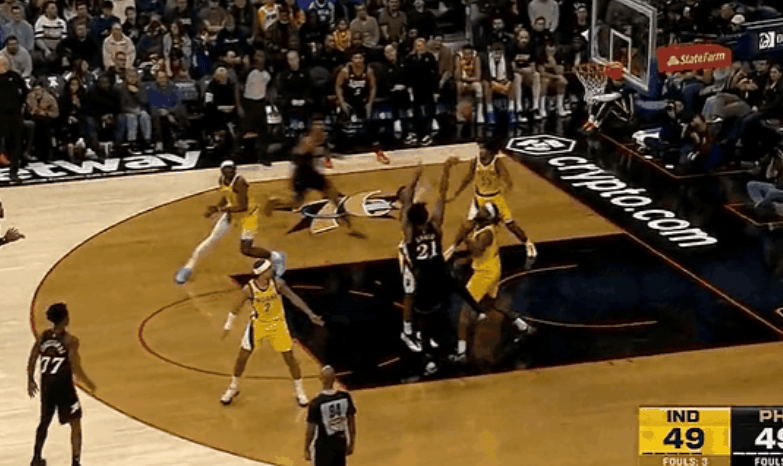 NBA常規(guī)賽,76人對(duì)陣步行者的視防守干比賽正在進(jìn)行中。