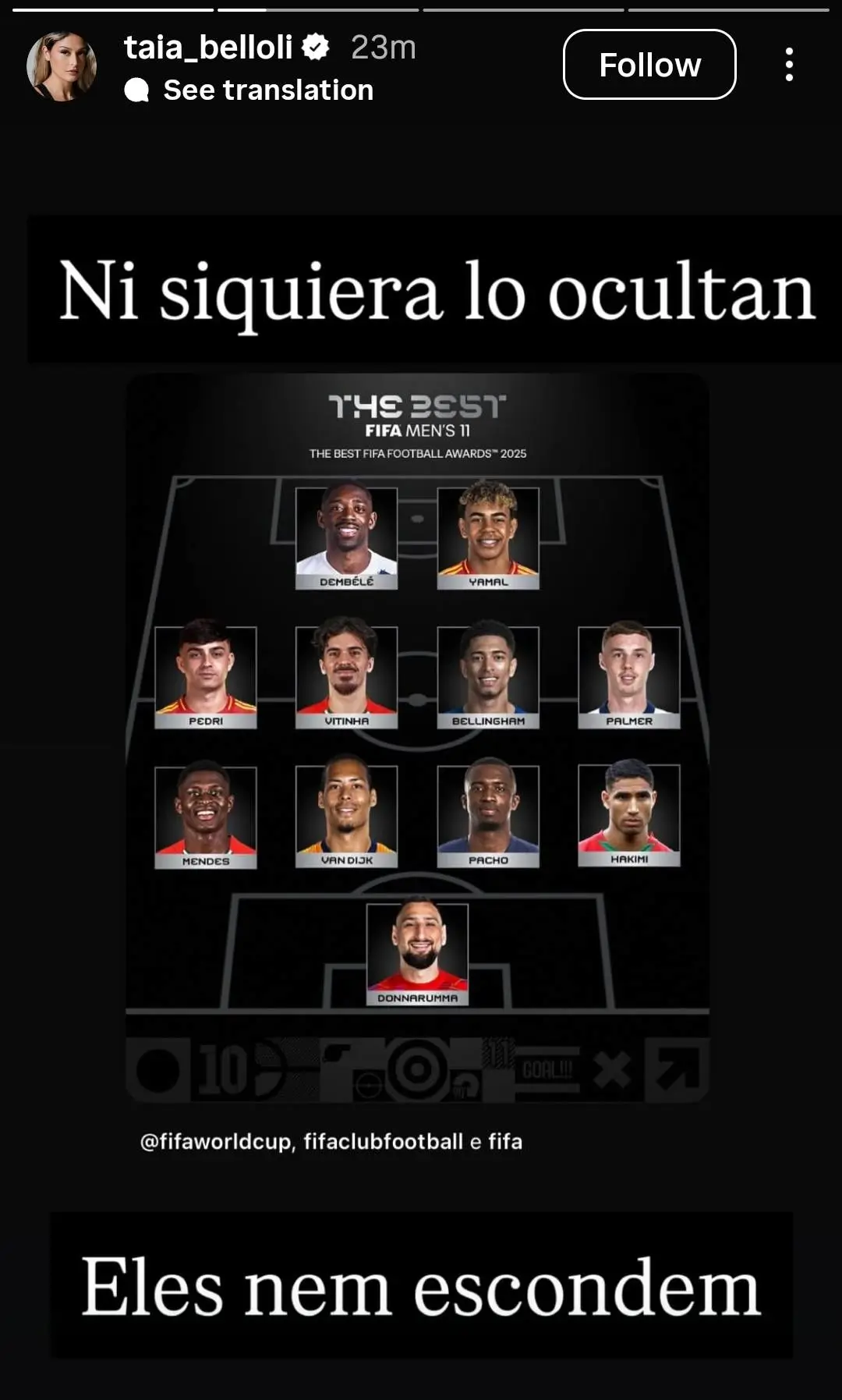 虎撲12月17日訊 在FIFA公布2025年最佳男足11人的陣容后,巴塞羅那邊鋒拉菲尼亞的妻子通過社交媒體表達(dá)不滿,已經(jīng)連續(xù)發(fā)布多條動態(tài)。