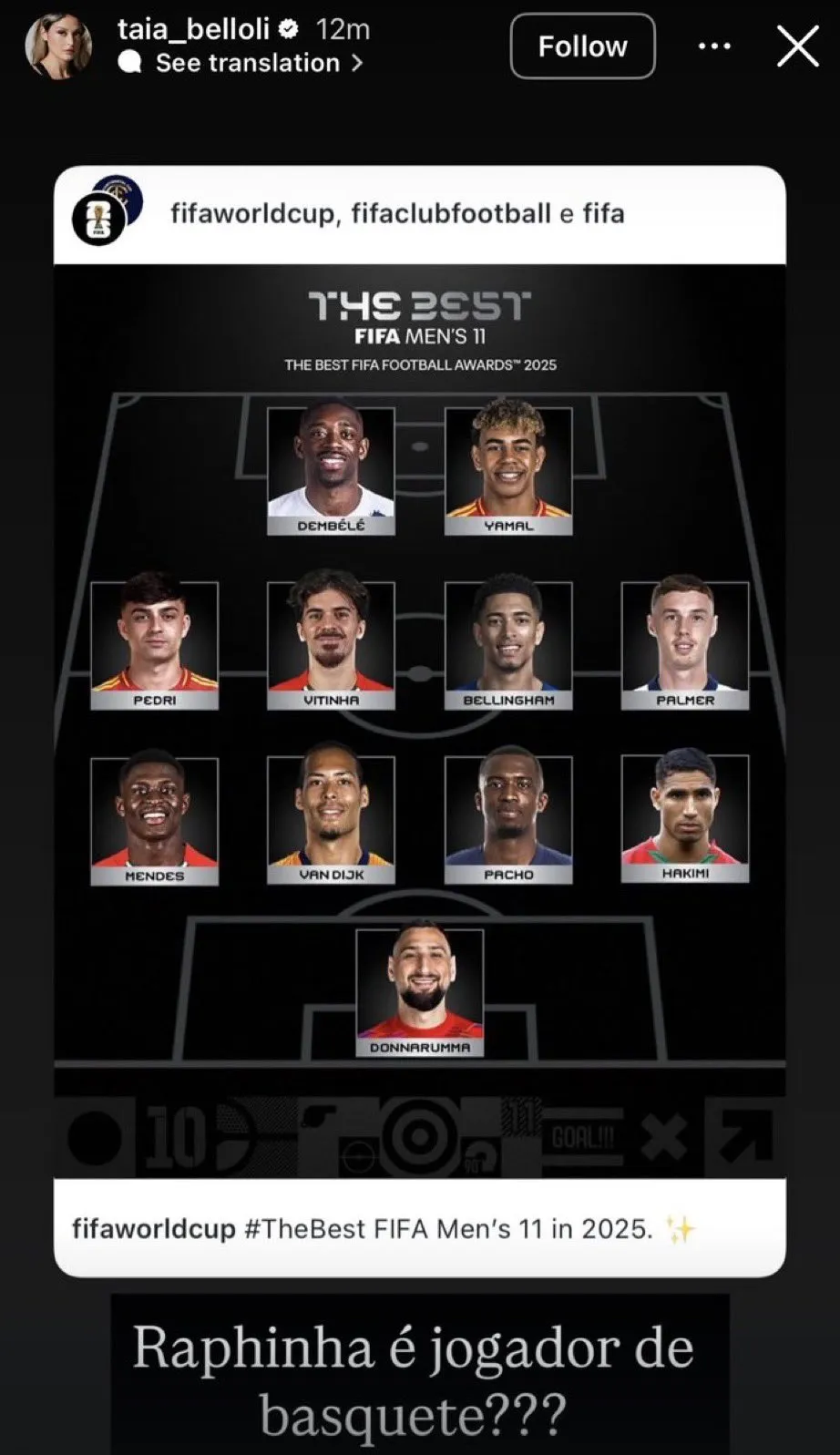 [流言板]拉菲尼亞妻子社媒三連開炮:直指FIFA最佳11人陣容評選不公